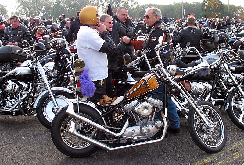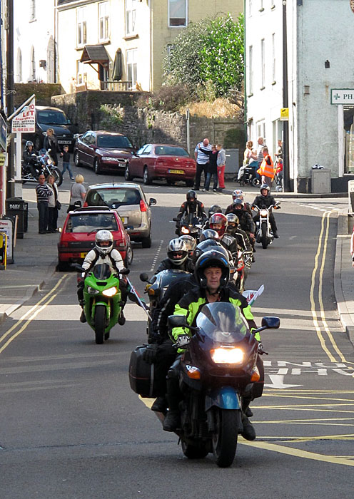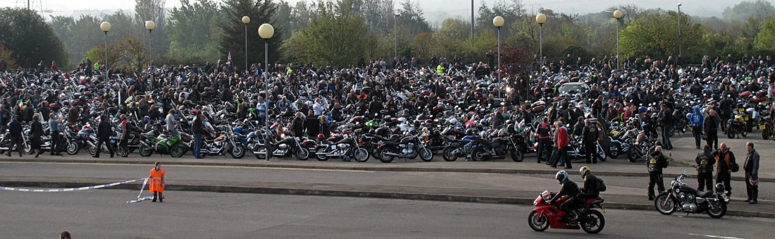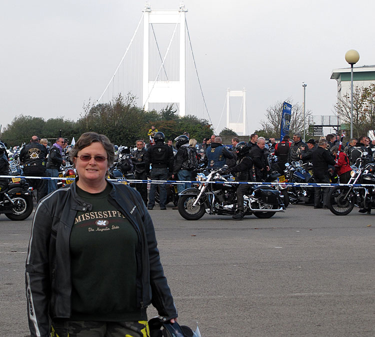 Hoggin' the Bridge is an annual charity ride. This year it was held on Sunday the 16th of October. It used to be a Harley Owners Group event (hence the name), but of recent years it seems to have attracted a wider variety of bikes. The route has varied over the years, but this year the ride commenced at Aust Services, crossed the old Severn Bridge, wound its way through some of the local towns and finished up in Chepstow, which was a bike only town for the afternoon. The weather was as good as could be expected for mid-October, so we went along for the ride. Here are a few pictures of the meet up at Aust Services, the bridge and some of the bikes arriving in Chepstow.