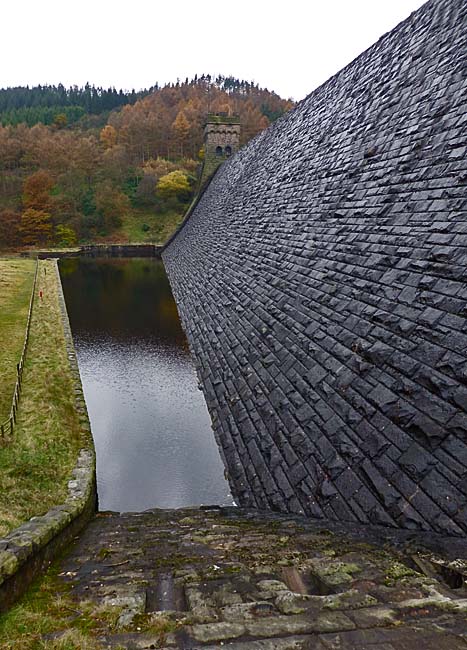 While we were in the Peak District we went for a long walk round the dams in Derwent Valley — this is Derwent Dam, where the Dambusters practiced for their mission during WW II