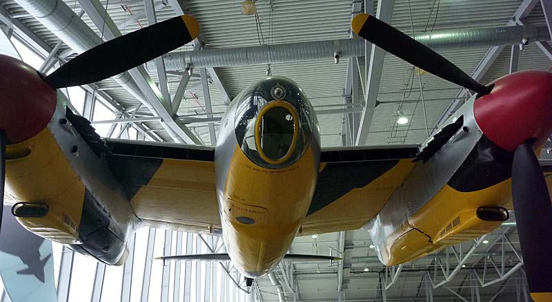 The muscular but beautiful lines of the DH Mosquito, with its twin Merlin engines