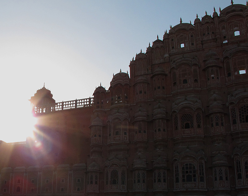 The sun sets behind the Hawa Mahal