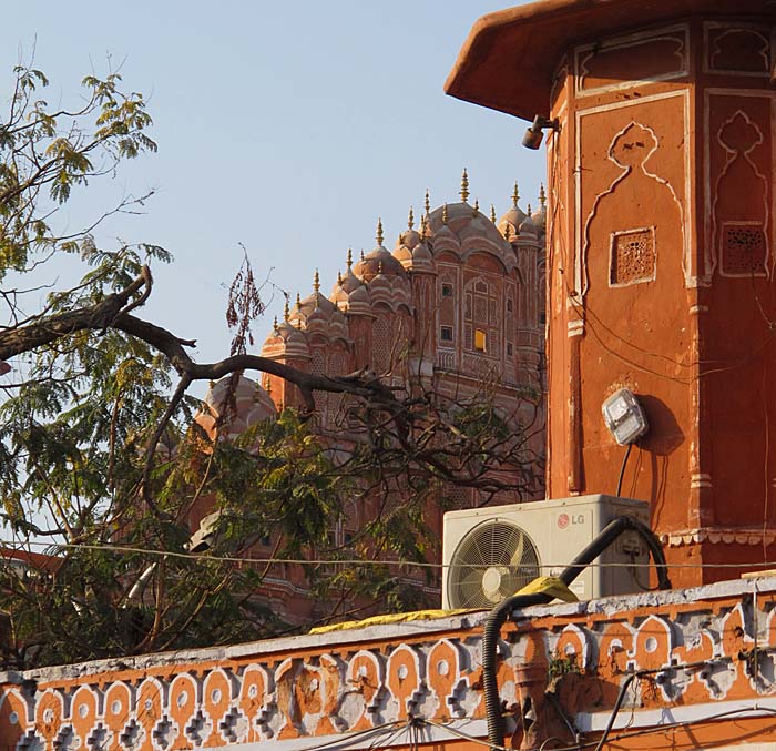 A glimpse of the Hawa Mahal (Palace of the Winds)