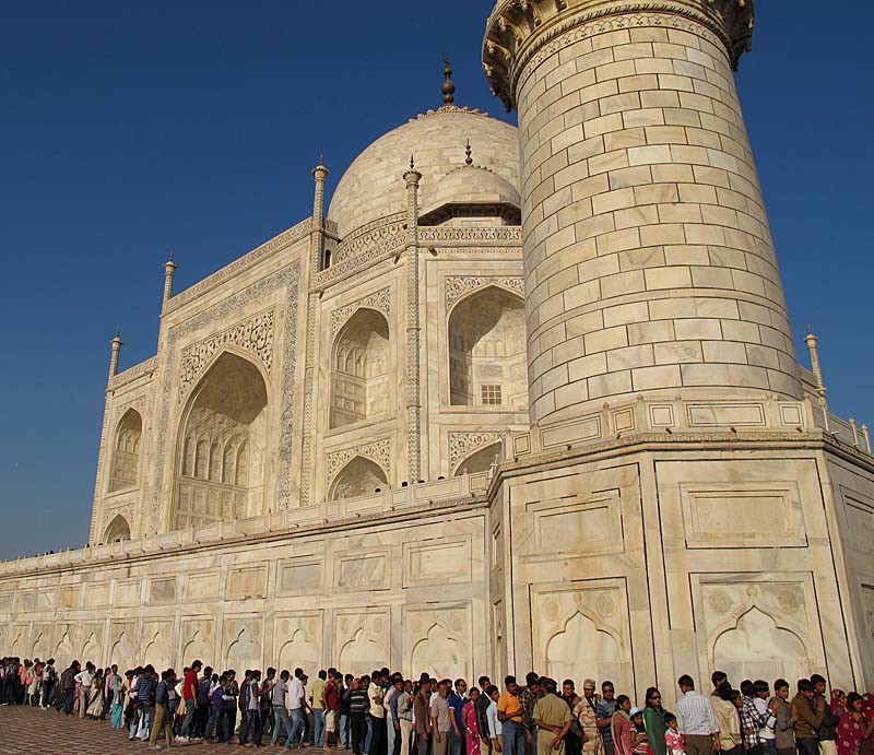 Indian nationals pay a much lower rate for their entry tickets, but have to queue for hours to see the interior of the mausoleum