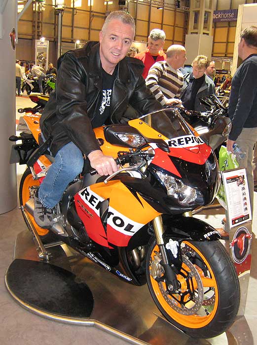 Andy trying out the Repsol 'Blade for size—don't they make any man-sized bikes any more?