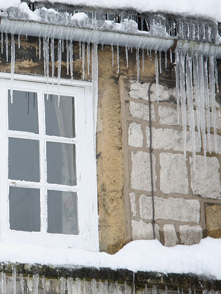 Having enjoyed a great biking week in the Peak District in July 2010, we decided to return to our favourite home from home, Printer's Cottage, for a week in late November/early December. Common sense dictated that we take the car . . . which proved to be a good call, as there was some snow on the ground when we arrived, and then it continued to snow steadily for much of our stay. The following pictures, in roughly chronological order, tell the story of the week, without the need for individual captions. Suffice it to say that both our cameras had run out of white pixels by the end of the week(!), when we just about managed to extract our car from a snowdrift and head home.