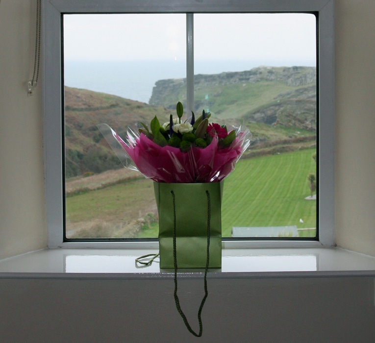 It would have been a shame to leave the birthday flowers at home, so we brought them with us and put them in the window of our room