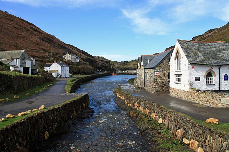 Boscastle suffered from very serious flooding in 2004 — the level is marked on this pub entrance — though fortunately no lives were lost