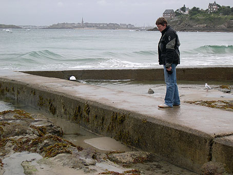 Down on the beach just a short descent from the hotel lawn. Is Janet about to get wet?
