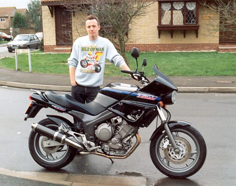 ![]() | Andy's next bike was certainly a bit different. The TDM850 was quite unlike anything else on the market and Andy was hooked after a demo ride. This was to be his ride for over five years, and was a great bike except for an uncomfortable seat (replaced with a Corbin) and a tendency not to start if left for too long in the cold weather. |