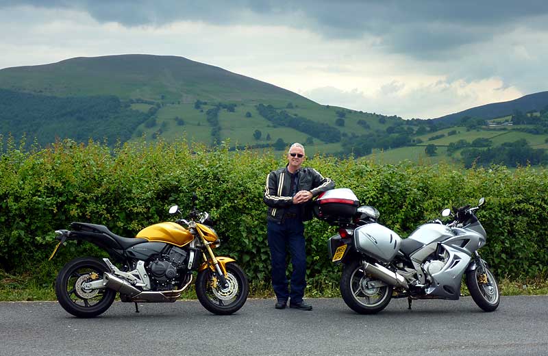 For the first time ever, in the many years that we've been biking, we decided to go to an owners' meet, with members of the CBF1000 Forum (not all of whom ride CBF1000s). The venue was Llanerchindda Farm, near Llandovery in Wales. Both the venue and the company appealed. And on the appointed day the sun shone, and it really did look like a great weekend in prospect.
